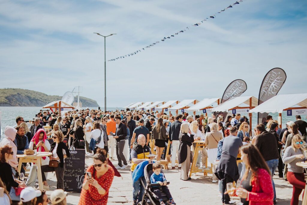 Nehmen Sie an der Geschmackspier teil, einer kulinarischen Veranstaltung im Freien, die mehrmals im Jahr auf der Nordmole in Izola stattfindet. Die Veranstaltung findet in einer idyllischen Umgebung statt, die einen atemberaubenden Blick auf die beliebten Strände Svetilnik (Leuchtturm) und Bele skale (Weiße Felsen) von Izola bietet, und bietet Ihnen ein einzigartiges Erlebnis der authentischen lokalen Küche.