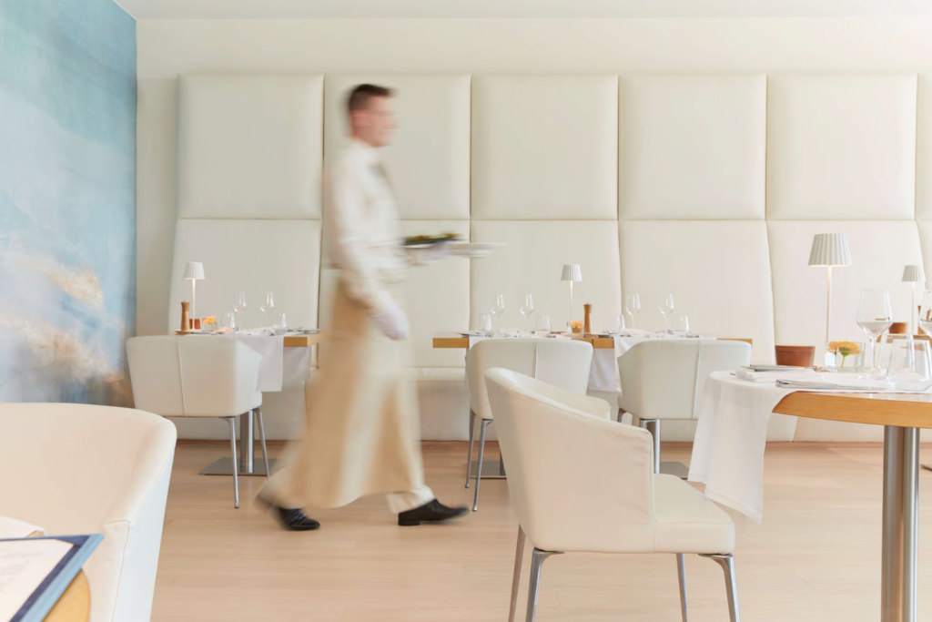 Das Design folgt einer kulinarischen Philosophie – Das helle und elegante Interieur kombiniert moderne Möbel mit authentischen Details, wie den winzigen Kristallen, die in die Bar eingelassen sind und die Salzblume symbolisieren.