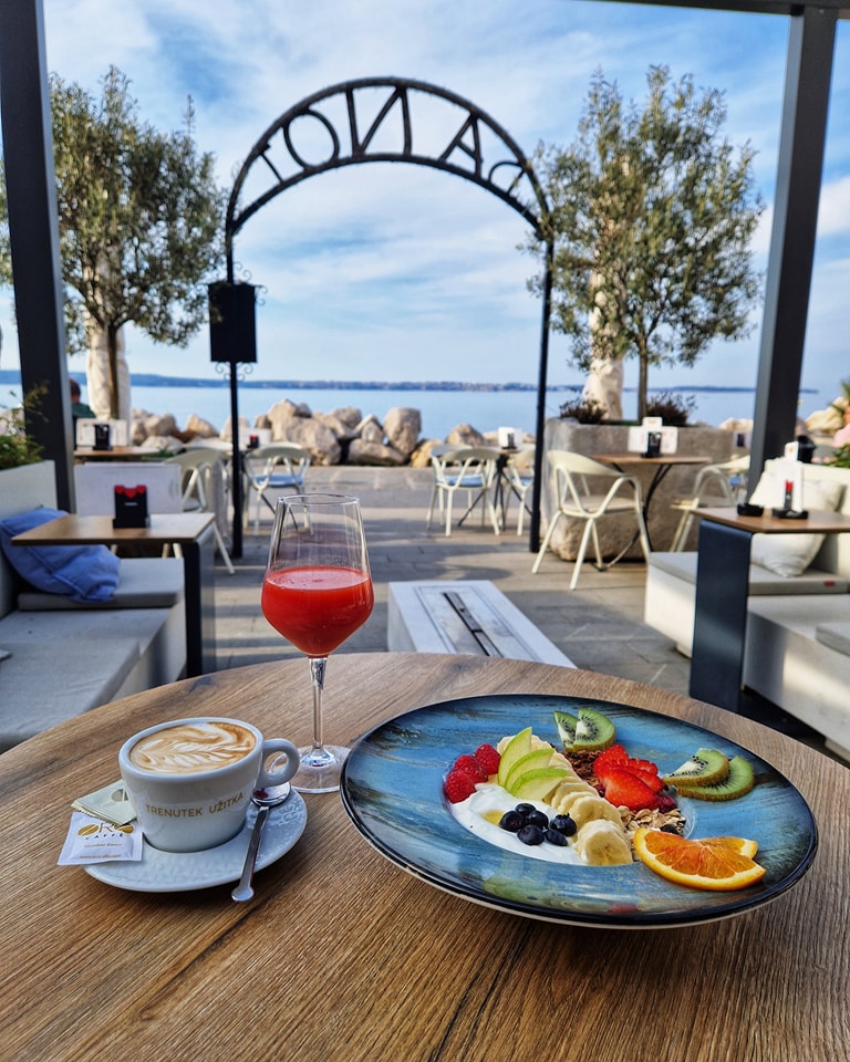 • Outside, the café has a spacious terrace with direct sea views. The ambience is elegant yet homely – ideal for slow mornings or romantic sunsets.