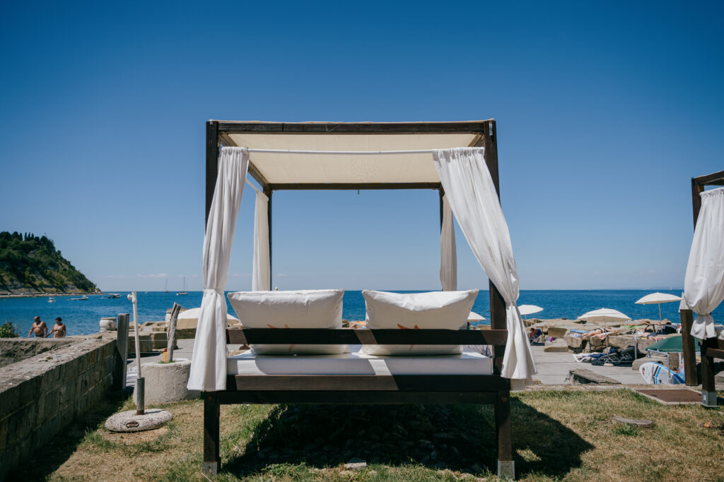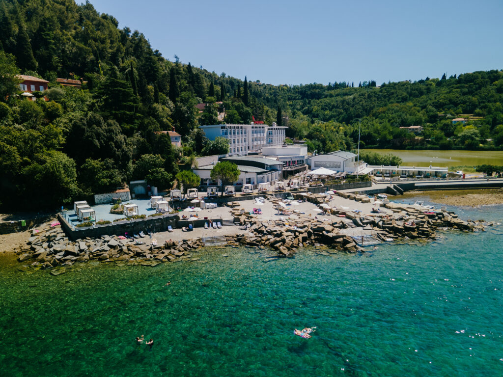 The hotel offers a beautiful beach and panoramic views stretching from the Adriatic Sea to Slovenia’s only lake that combines freshwater and seawater.