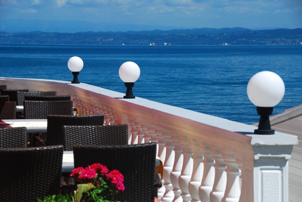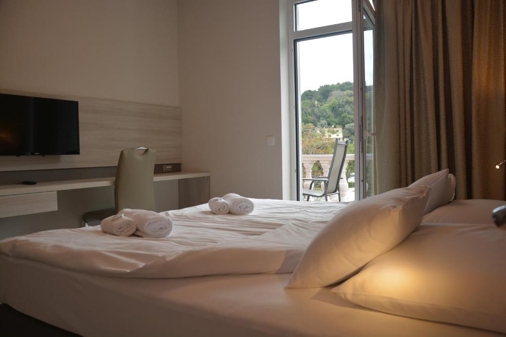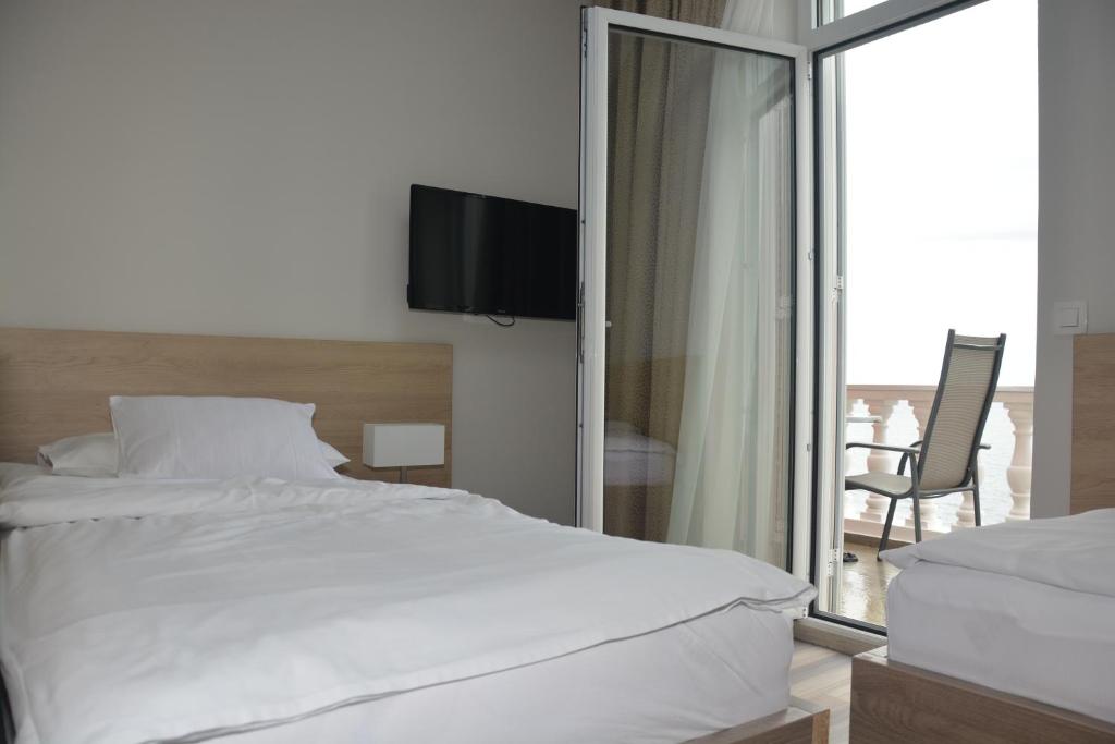 Restaurant with a wonderful view of Fiesa Bay, bar, family room, direct proximity to the beach, Wi-Fi in the rooms, room service.