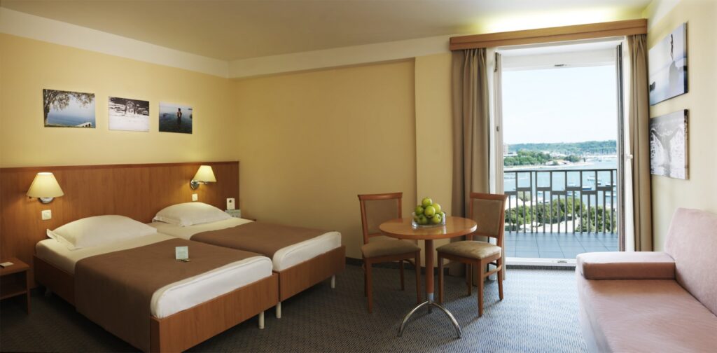 Located near a pine forest and the sea, the hotel offers direct access to Terme Portorož, where guests can unwind in wellness centers and pools filled with seawater and thermal mineral water.