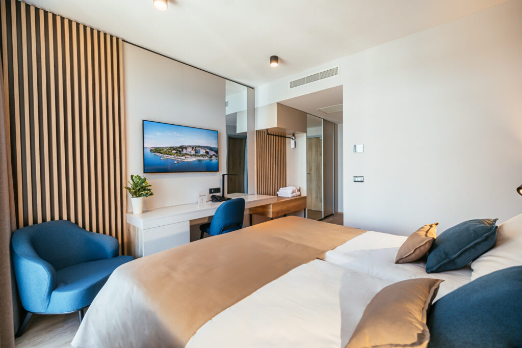 Hotel Riviera**** is a modern hotel with a stunning view of the Piran Bay, located right next to the hotel beach and the Portorož promenade.