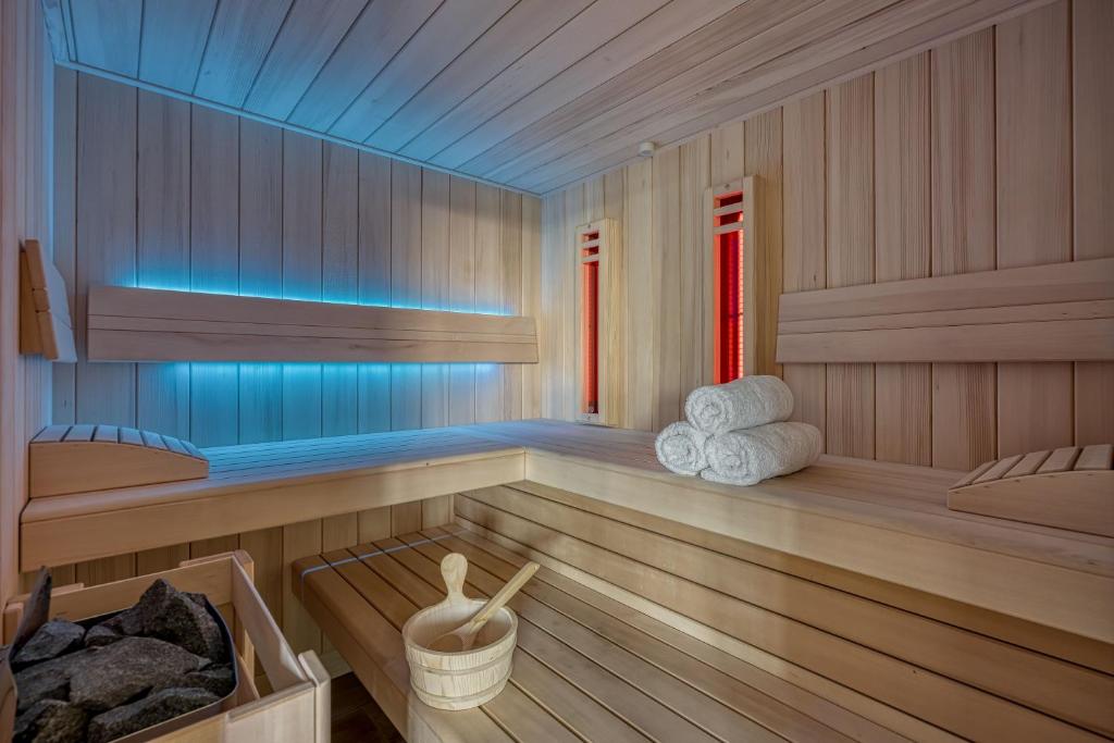 • Exterior: seasonal outdoor pool, hot tub (jacuzzi), sauna, terrace, parking