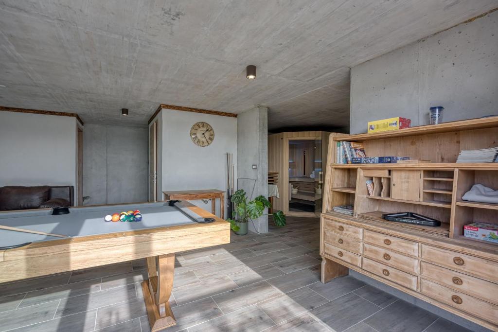Villa Olivia features three spacious bedrooms and three bathrooms, along with a terrace, private pool, sauna, jacuzzi, and billiards table.