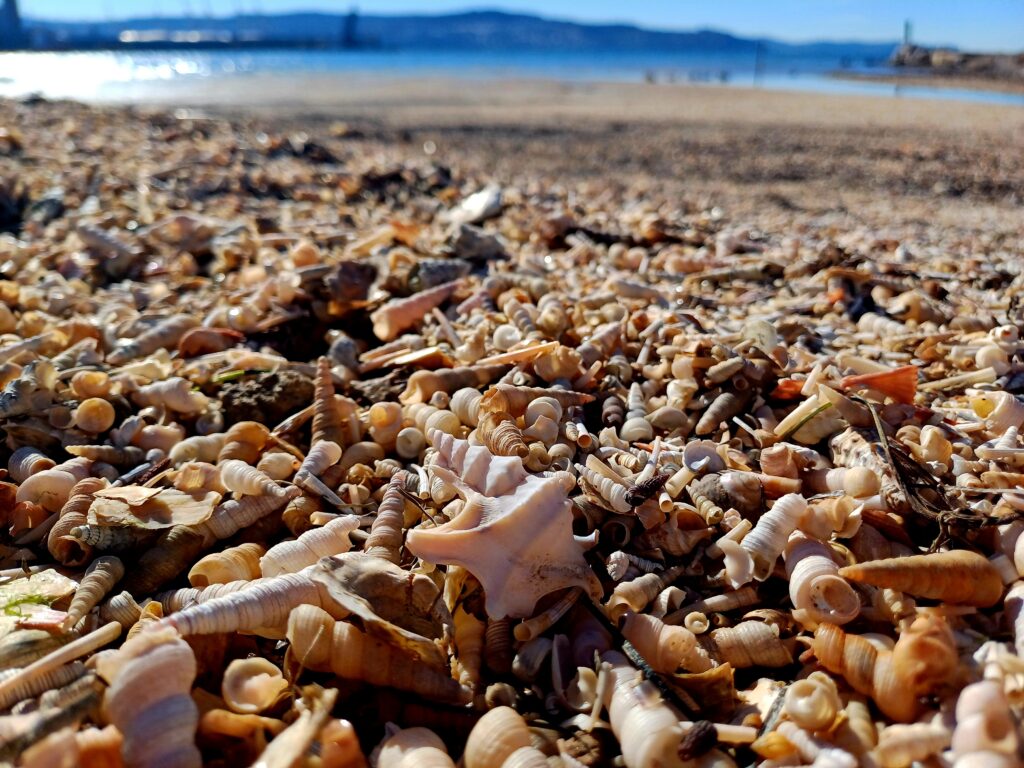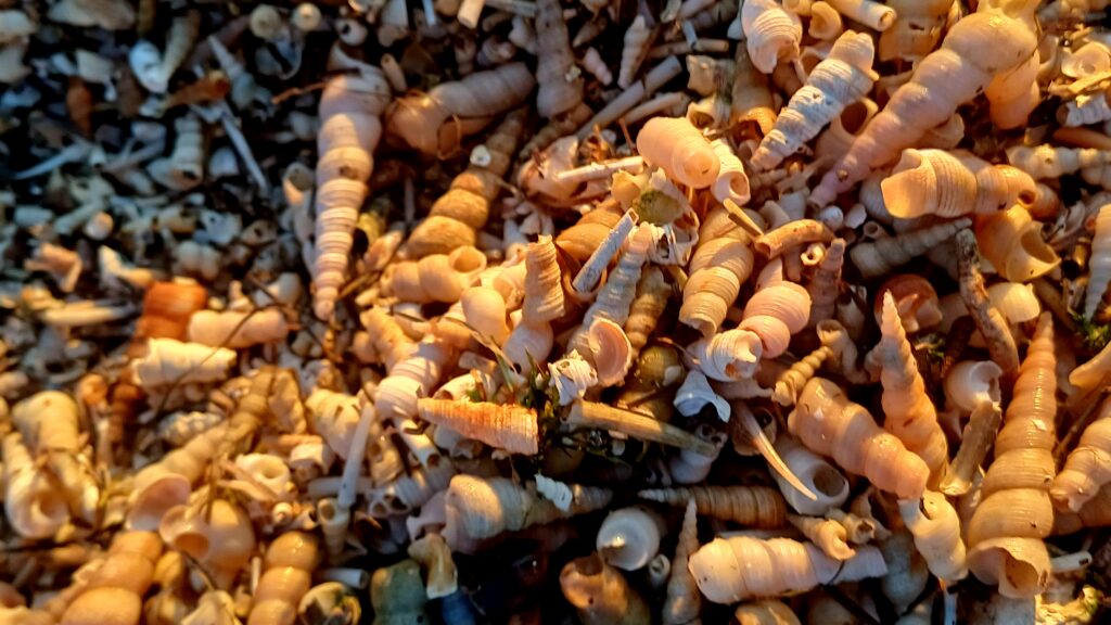 At the foot of the meadow, the walk continues to St. Catherine’s Bay, opening up views of the remarkable coastal landscape. Along the way, there is a short stop at the outdoor fitness area, offering time to enjoy the scenery and take a brief rest. The path then leads to the Shell Cemetery, a natural phenomenon where numerous species of shells and snails form a unique coastal deposit. Here, your guide explains the formation of the shell bank, the area’s biodiversity, and the importance of protecting this exceptional habitat.