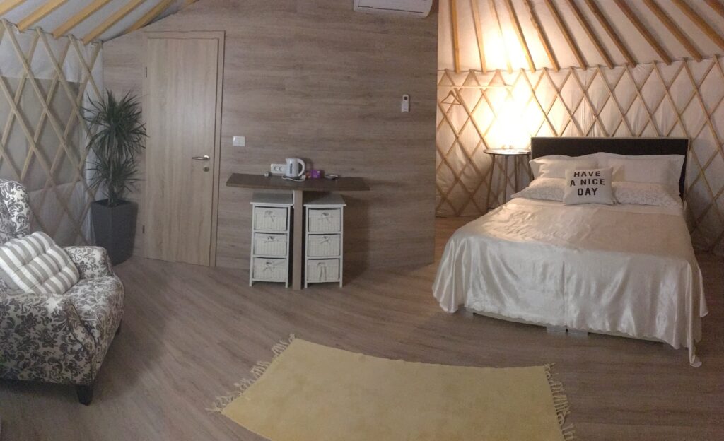 • Yurta con letto Queen e divano letto (fino a 4 persone)