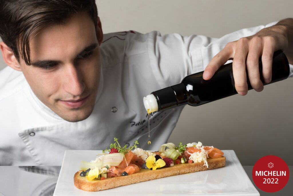 Filip Matjaž è un giovane chef di alto livello che desidera introdurre gli ospiti a un modo completamente nuovo e diverso di gustare cibi e bevande, nel primo ristorante stellato di Portorose, ispirato al motto Cooking Outside the Box (COB).
