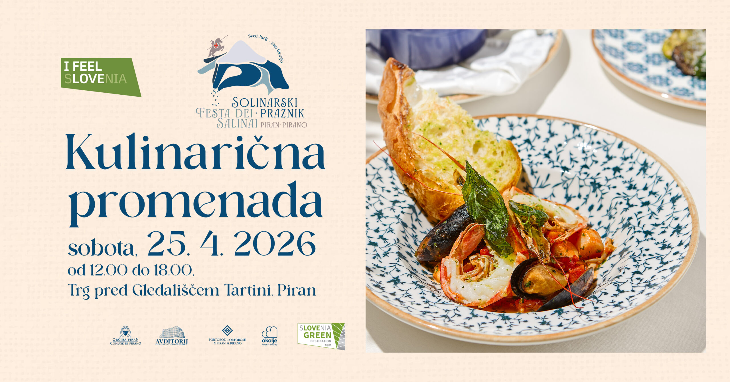 V soboto, 25. 4. 2026, bo med 12.00 in 18.00 potekala na Ribiškem trgu v Piranu v okviru Solinarskega praznika. Tokratna tematika bo posvečena morskim jedem – poudarek bo na svežih ribah, morskih sadežih in interpretacijah okusov severnega Jadrana.