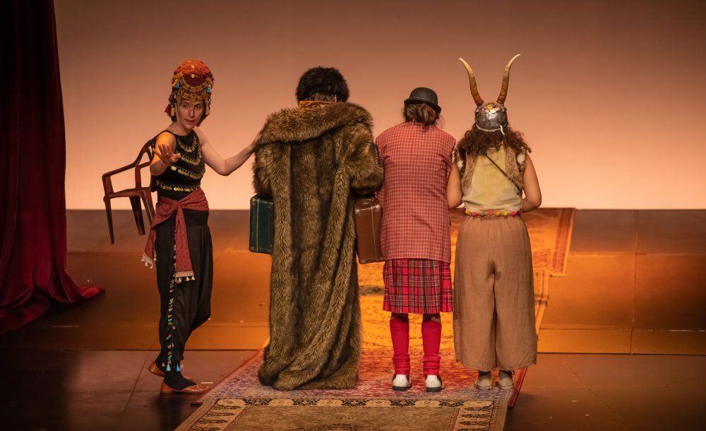 V mesto, naravnost med nas, prihaja karavana. Ne vemo, od kod prihaja in kam gre. Vemo pa, da prav tako skrbno, kot druge karavane tovorijo najdragocenejše blago – žafran, sol, čaj ali čokolado –, naša išče in tovori zgodbe. In na svoji poti najde take za vse priložnosti in potrebe: zgodbo za dober začetek, zgodbo, ki te pogreje, zgodbo, ki te potolaži, razburljivo zgodbo, zgodbo, ki izpolnjuje želje, strašljivo zgodbo, zgodbo, ki išče in na koncu najde srečen in pravičen konec. Štirje pripovedovalci in trije živahni glasbeniki vsepovsod stikajo za zgodbami in v pripovedi vpletajo zvoke, slike, predmete, občinstvo; da se znajde v zgodbi, je njim in nam vendar na voljo ves svet.