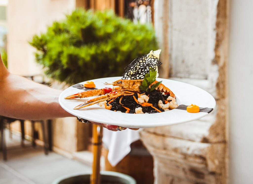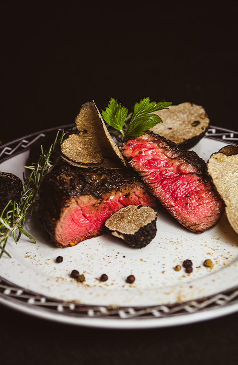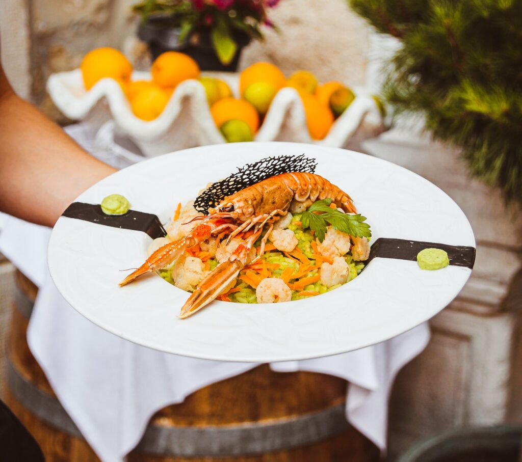 • Glavne jedi: Brancin na žaru, biftek z tartufi, rižota s škampi in lignji
