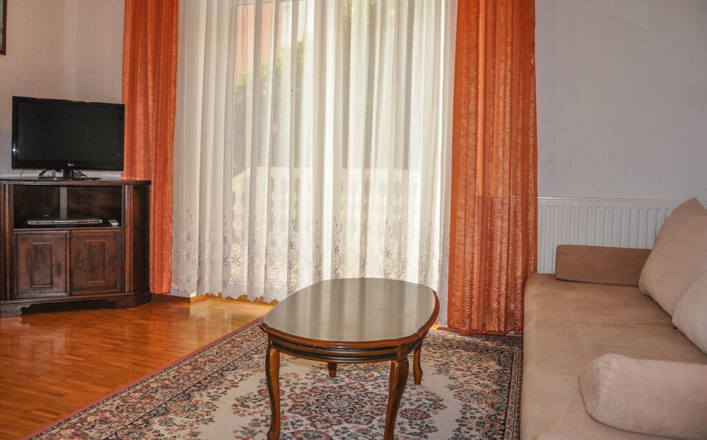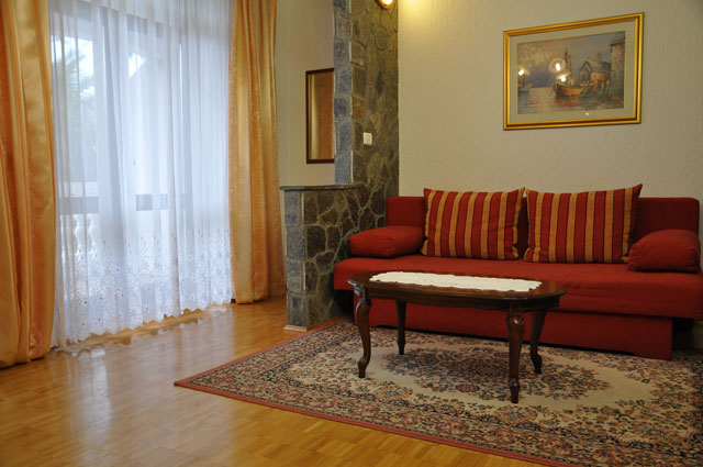 - Oprema: klimatska naprava, kabelski internet, kabelska TV, DVD-DivX, CD radio, likalnik, stilno pohištvo