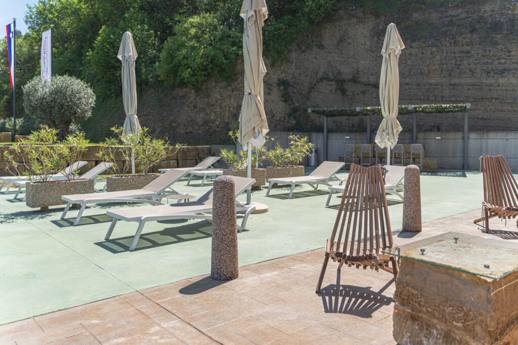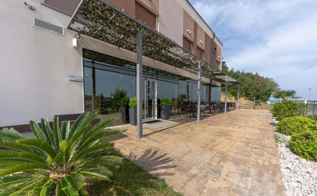 Ponuja izjemno hotelsko teraso s čudovitim razgledom na Strunjanski zaliv in soline, kjer lahko uživate v zajtrku, kavi ali hladni pijači ob sončnem zahodu.
