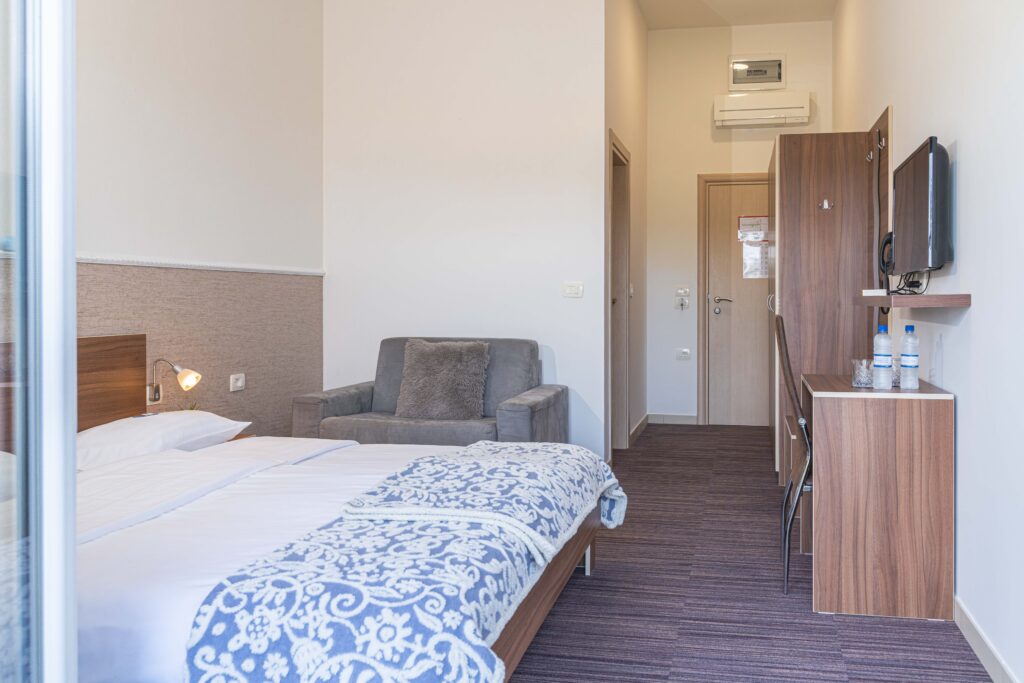- Storitve: brezplačen Wi-Fi, klimatska naprava, LCD TV, telefon z neposrednim klicanjem, sef v sobi