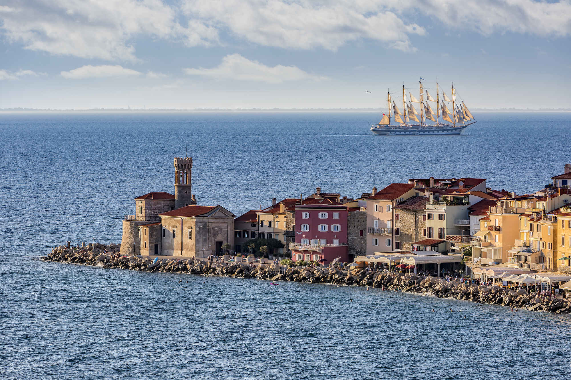 Za piko na i se povzpnite na piransko obzidje. Ste vedeli, da je bilo obzidje zgrajeno v več fazah, da bi mesto zavarovali pred vpadi? Danes namesto vojakov nudi zavetje fotografom in romantikom. Ob jasnem dnevu bo vaš pogled z vrha segel vse od hrvaške Istre do italijanskih Alp in Benetk na obzorju.