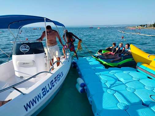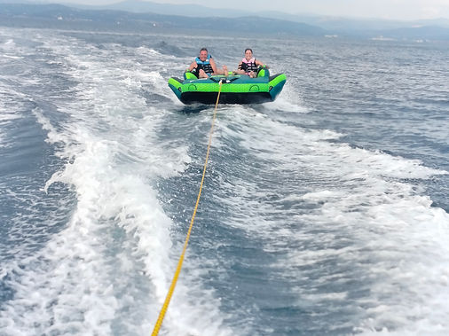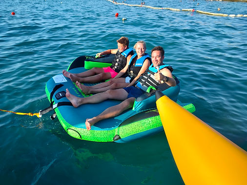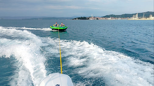 - Vožnjo z vlečnim gliserjem na adrenalinskem kavču (približno 15 minut) – nepozabna morska izkušnja, kjer vas hitrosti in skoki po valovih popeljejo v svet smeha in čistega adrenalina.