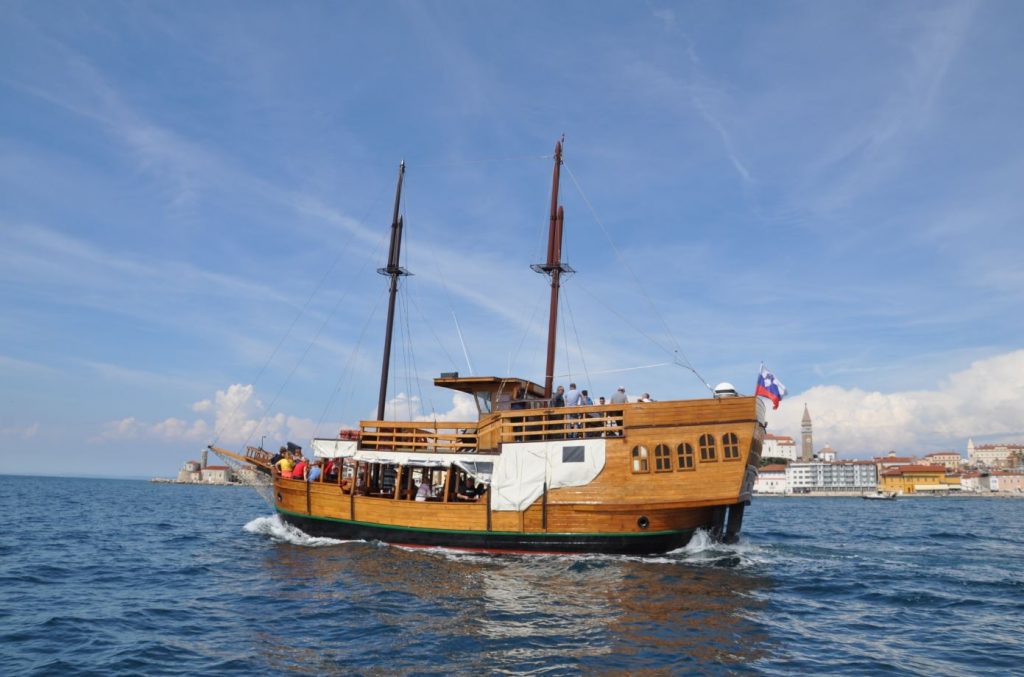 • Panoramski izlet z ladjo mimo Pirana, Fiese in školjčišč, kjer boste v objemu morskega vetra občudovali slikovito obalo v toplih tonih zahajajočega sonca.